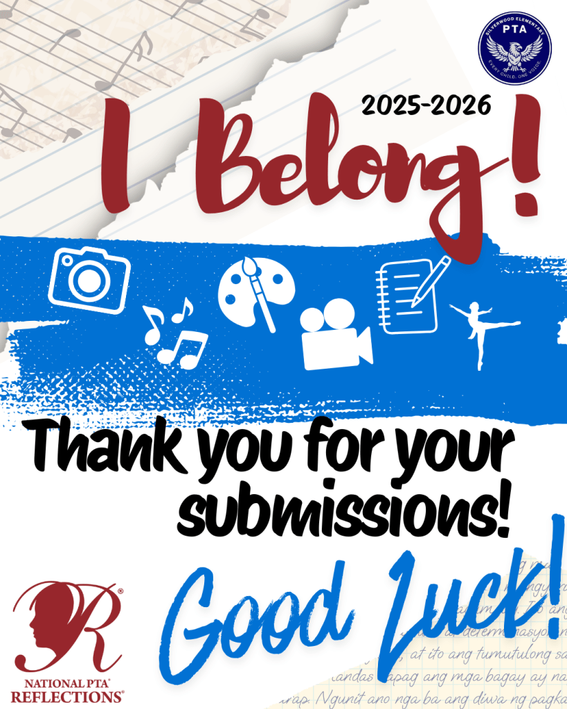 The PTA Reflections Program is back at Silverwood Elementary! The PTA Reflections Program a chance for students to express themselves, explore their creativity, and share their unique voices through the arts. This year’s theme – “I Belong” inspired incredible imagination, and we are thrilled to share that we received 10 amazing submissions from our talented students!